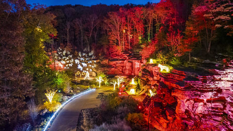 In partnership with Creative Director Melody Methany, SPRK developed a lighting and control solution to support a temporary holiday overlay throughout the three mile long “scenic adventure” experience. The final design leveraged more than 800 individual fixtures and a custom fiber optic control network that highlighted the jagged rock facades, sparkling waterfalls, and breathtaking vistas of the Ozarks.